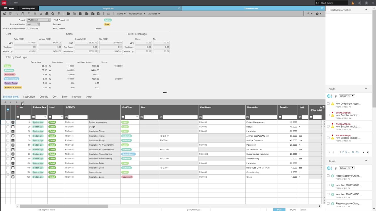 Its analytics (powered by Infor Birst) provide contextual dashboards and KPIs that support operational and financial visibility across business functions.