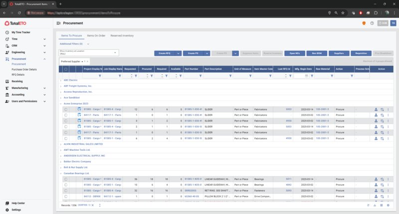 TotalETO helps businesses streamline sales, engineering, procurement, manufacturing, and accounting with real-time job costing, versioned BOMs, and parts tracking to increase efficiency, accuracy, and profitability.